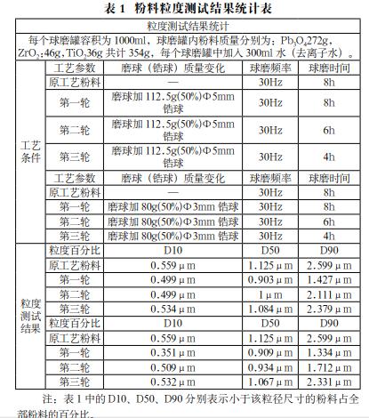 各種原料經(jīng)過粉料均勻磨細(xì)后,新的粉料粒徑小于舊的原料粒徑。在后續(xù)的燒結(jié)工藝中,粒徑較細(xì)的粉料容易燒結(jié)成晶向致密的塊體,可燒成的溫度范圍也大,燒成陶瓷后單位體積密度會理想。d33、電容、損耗、介電常數(shù)等壓電陶瓷性能測試結(jié)果會加穩(wěn)定。