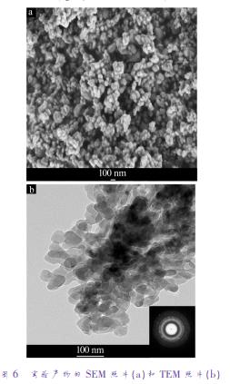 圖6分別為實驗產(chǎn)物的SEM和TEM照片。由圖6a可以看到,粉末為均勻的粒狀產(chǎn)品,無塊狀產(chǎn)物出現(xiàn)。從圖6b可見,產(chǎn)物為粒狀顆粒,大小尺寸均小于100nm,其SAED圖可看到多個同心圓的衍射環(huán),說明納米磷酸鋅是一結(jié)晶性良好的多晶結(jié)構(gòu)。